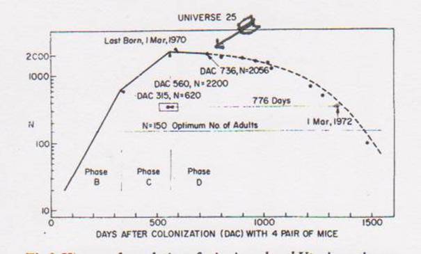 John Calhoun Death Squared: The Explosive Growth and Demise of a Mouse Population Proceedings of the Royal Society of Medicine vol. 66, January 1973 page 80 (The crude arrow is mine. I initially thought that their estimates might have introduced an error, but on further review and reflection I think they are probably good.)