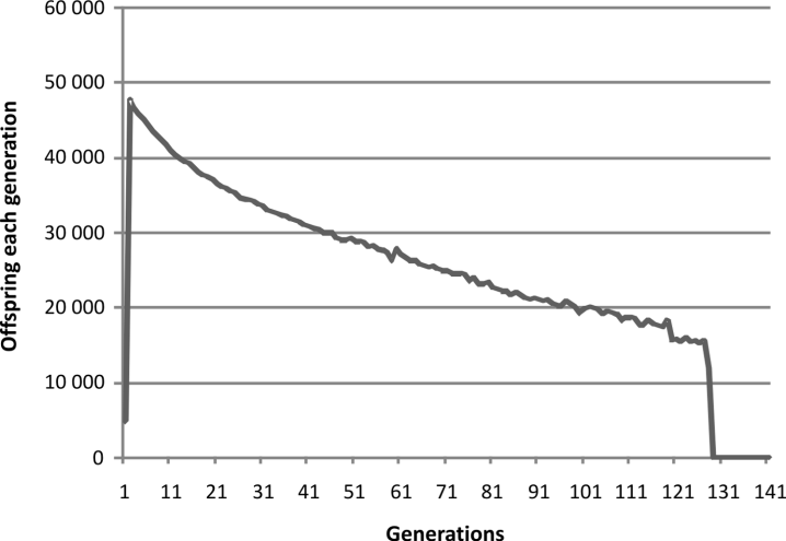 Real fruit fly fertility increases with average consanguinity thus decreasing with population