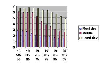 - The UN has accumulated data on the total fertility of countries and divided those countries into least developed, middle and most developed, thus.