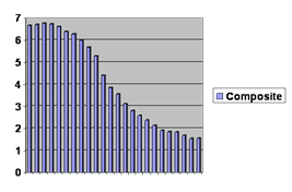 Here are the same data edited so that the first few years follow the least developed, the skip over to the middling countries and finally skipping over to the rich countries: