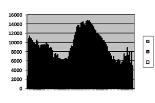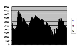 - Here is the time course of weevils in a Canadian forest; actually it is a computer model of experience. The gray is the amount of available food; the patterns are evidence of the insects. At first the insect population is limited by food, but then it dies out according to the rule: up, down, level off, die.