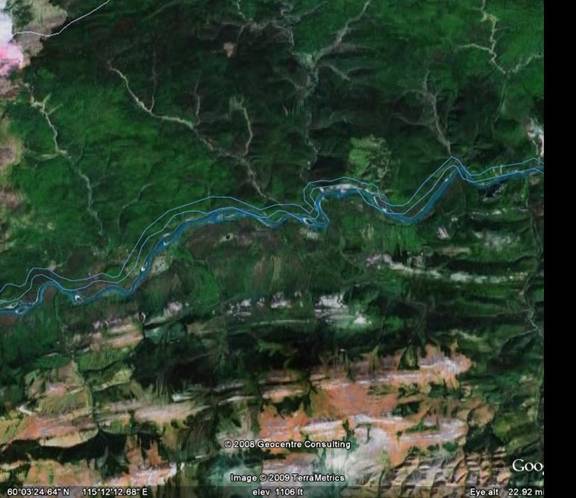 The problem is that I do not know exactly where the air burst took place. If it took place over a barren spot surrounded by confluent forest canopy, that would prove nothing. For instance 60o 5’ 3.95” N 115o 12’ 35.92” E centers on a little lake and the surrounding forest seems unbroken. It could be the site or it could be a flight of fancy.